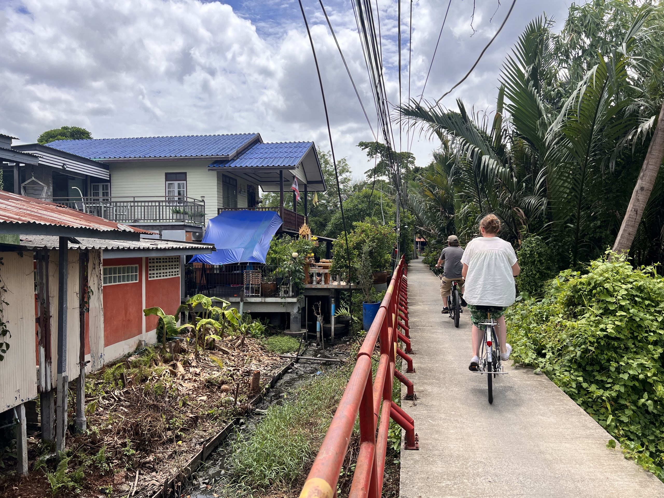 Bet tad! Bet tad mēs vēl pāris dienas palaiskojāmies pa Bangkoku. Izstaigājām pāris parkus, ATKAL DAUDZ ĒDĀM, JO ŅAMMMM, bet pēdējā dienā devāmies interesantā izbraucienā uz tādu kā citu pasauli. Tepat nedaudz nost no centra, otrpus upei, ir vieta “Sri Nakhon Khuean Khan Park”. Tur ir pilnīgi citas sajūtas kā “lielajā Bangkokā”. Nedaudz kā laukos. Pāri tiek ar mazu prāmīti, uzreiz var iznomāt vecus velosipēdus un braukāties apkārt. Tur arī jauks parks ar visādām pieturas vietām, kā Botāniskais dārzs vai tml. Pēdējo dienu pavadījām relaksēti un ārpus pilsētas trokšņiem un cilvēkiem.