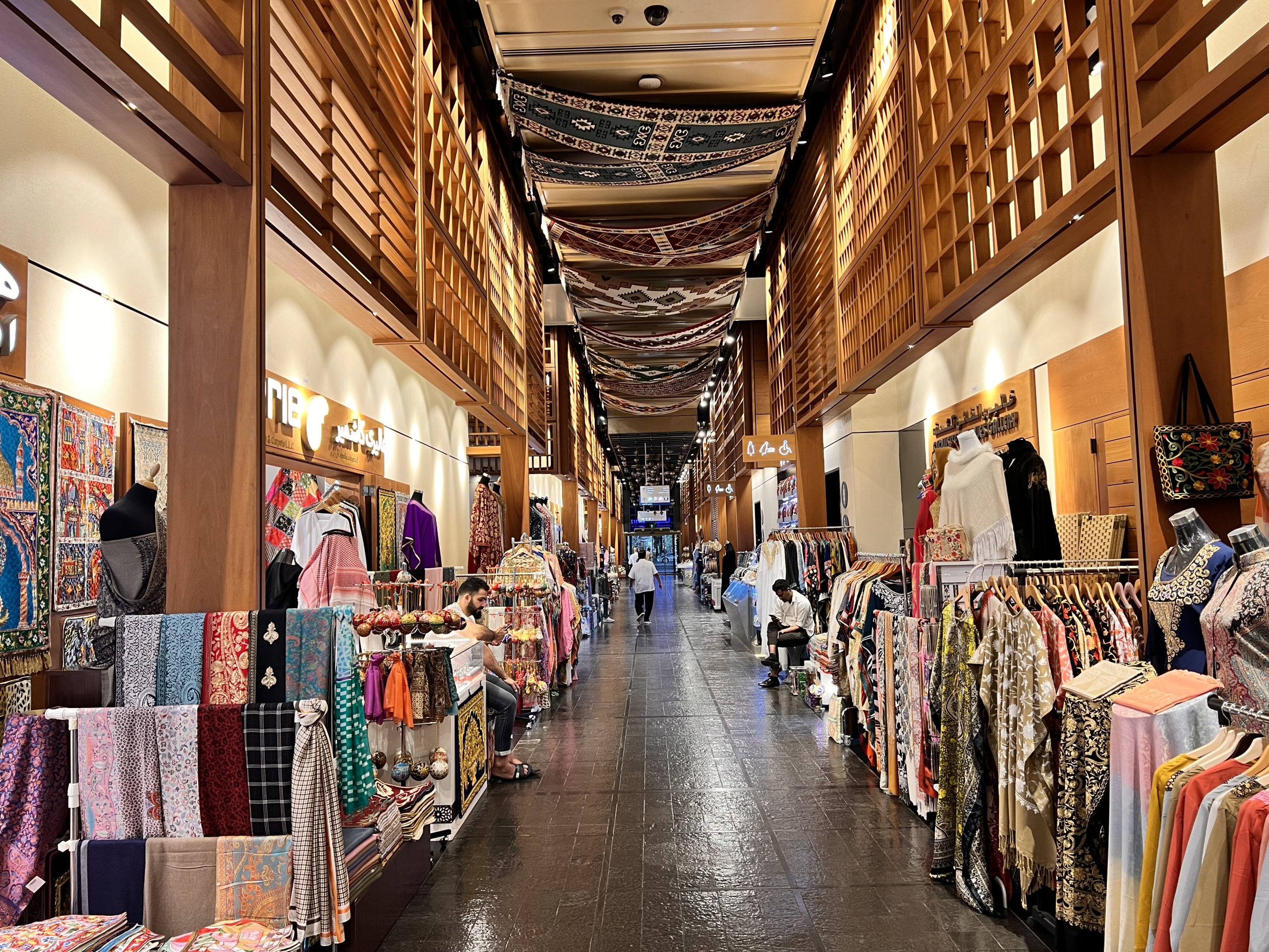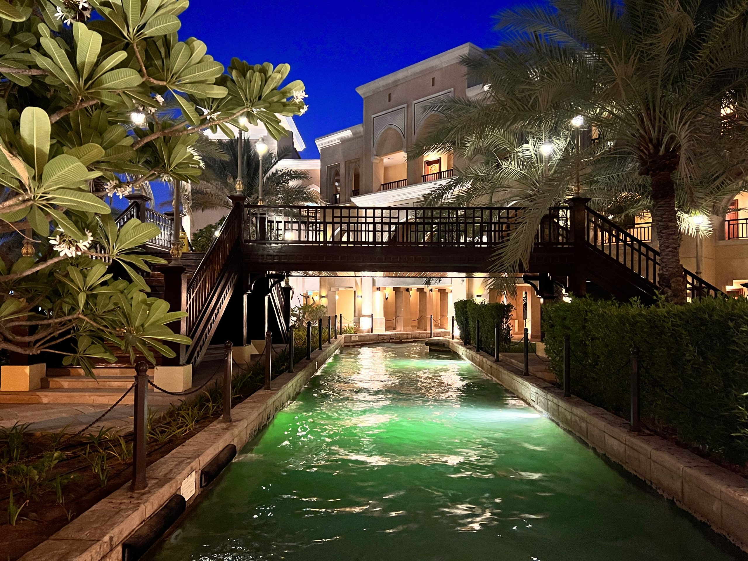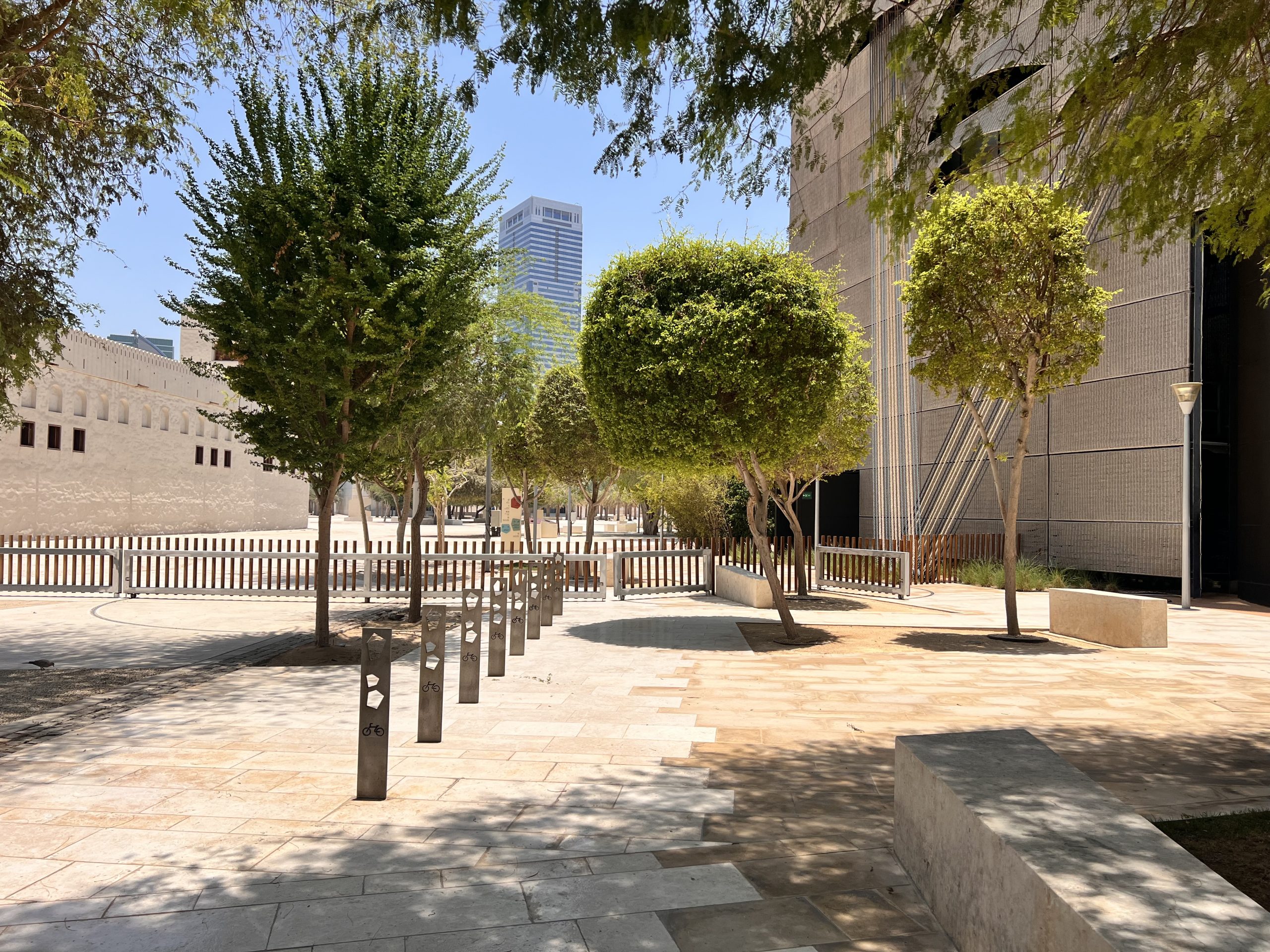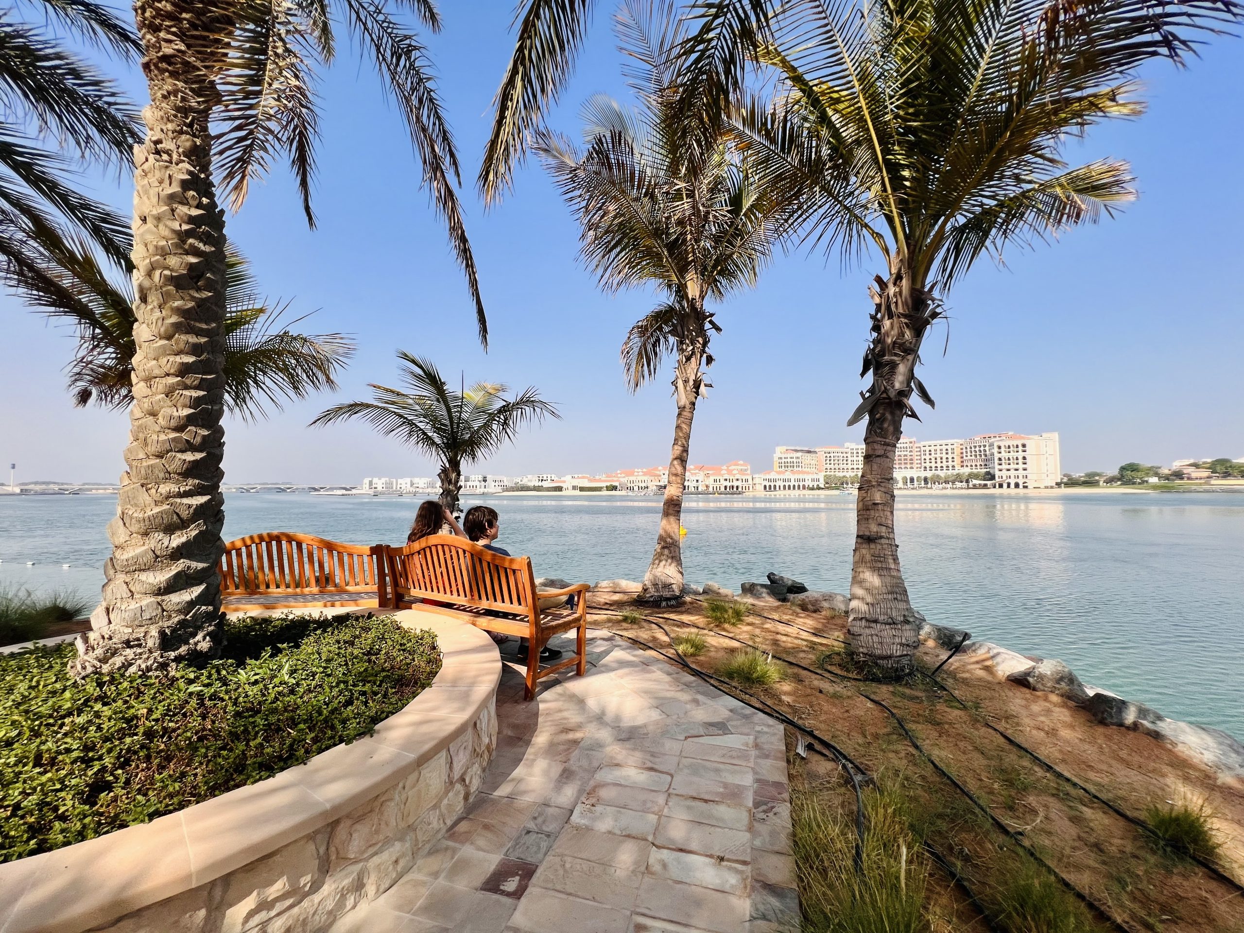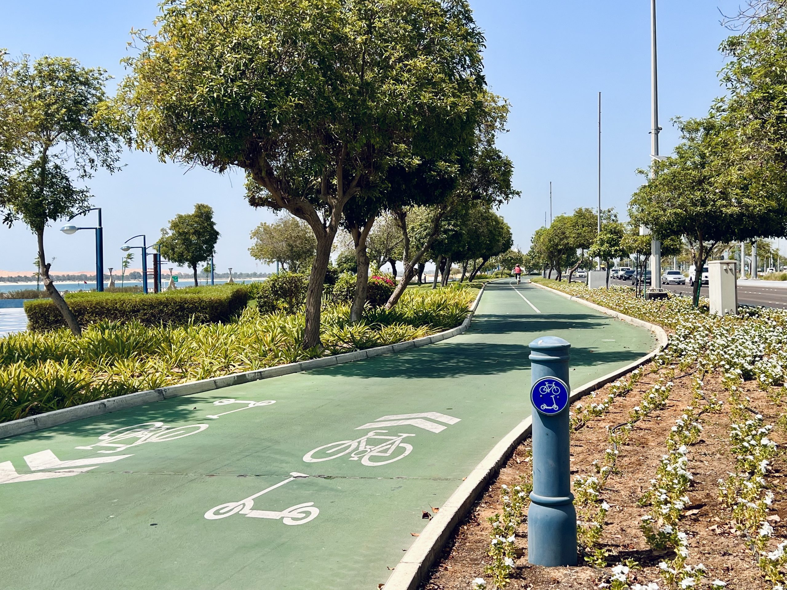 Pēc mošejas apmeklējuma gribējām braukt ar autobusu, tāpēc ieslēdzāmies kondicionētajā pieturas būdiņā, kamēr to gaidījām, bet tad izrādījās, ka autobusos ņem tikai skaidro naudu un brauciens atkrita. Braucām vien ar Uber. Centrā bija vēl pāris vietas, kur gribēju aiziet, bet visi tie plāni sabruka dēļ anormālā karstuma. Ātriem soļiem, vadoties pēc reto koku ēnām, tikām līdz vecajam fortam, atkal noslēpāmies info centra kondicionierī, tad līdzīgā skrējienā tālāk uz veikalu utt. Te neko ar kājām īsti apmeklēt nevaru rekomendēt, īpaši jūnija vidū. Neskatoties uz to, pēc lielveikala un pusdienām bijām arī aizgājuši līdz pludmalei, pastaigājām pa promenādi un tad arī devāmies atpakaļ uz viesnīcu, kur papeldējāmies siltajā ūdenī. Vakarpusē atklājām, ka viesnīcā ir bezmaksas laiva pa tādu kā Venēcijas stila kanālu sistēmu no viesnīcas līdz tuvākajam greznajam “tirgum”, kurš gan bija tāds puspabeigts – liela daļa vietu bija slēgtas un tur īsti nebija ko darīt. Tāda gan sajūta ir visu laiku Abudabi, vai nu cilvēku nav, jo tie slēpjas pazemē, vai cilvēku nav vienkārši tāpat. Viss tāds mākslīgs, tukšs un sterils. Varu saprast, jo kurš gan te varētu gribēt braukt un dzīvot, izņemot piemānītos migrantu strādniekus, kuriem atņemot pases un piespiežot būvēt visas tās lielās mājas.