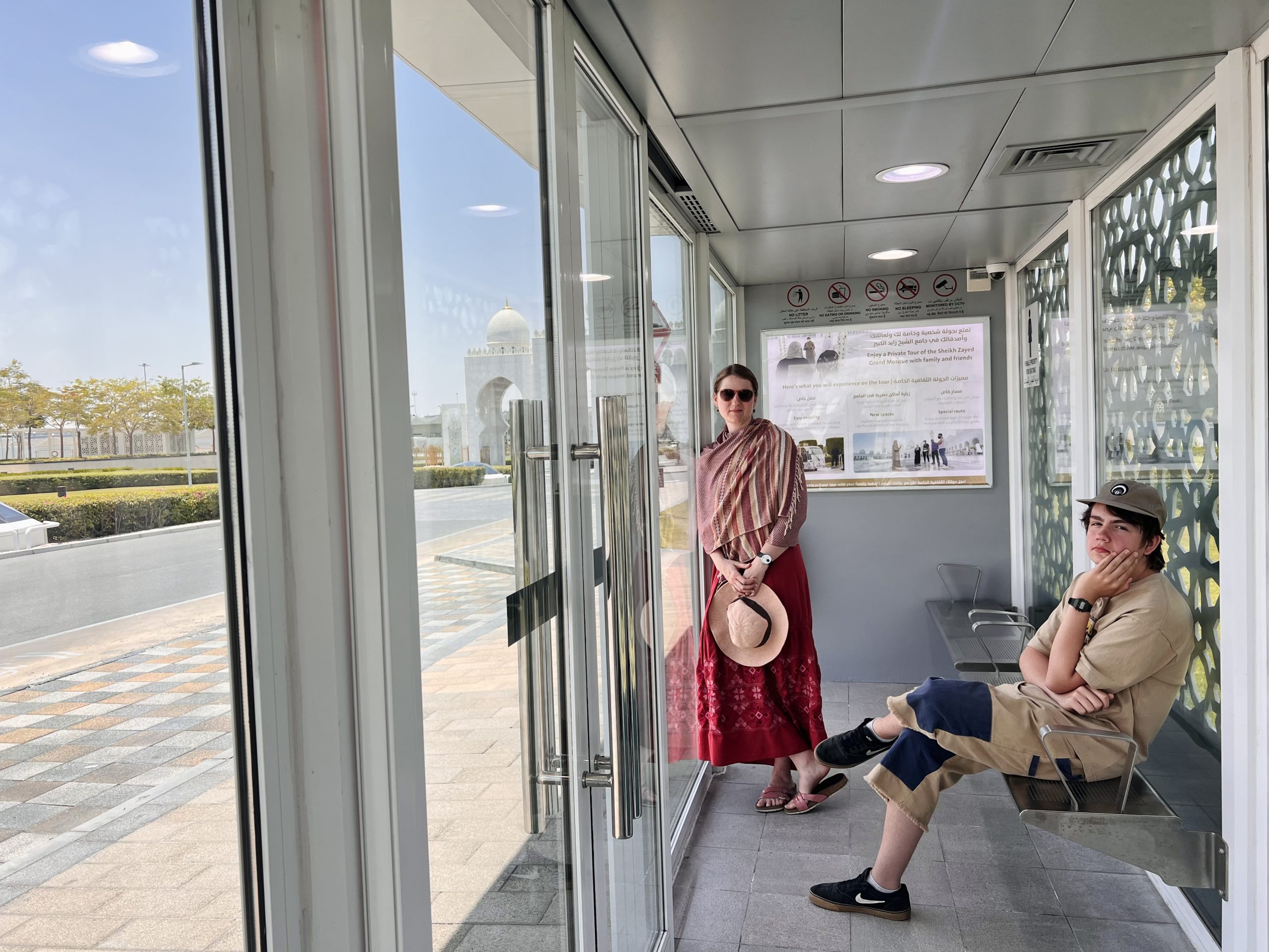 Norai līdzi bija lakats un garie svārki līdz zemei. To visai strikti arī pārbaudīja jau pirms doties uz biļešu kontroli. Ik uz soļa bija sievietes-darbinieces, kas izvērtēja vai visi pienācīgi saģērbti. Par ko nevarēja sūdzēties ir organizācija – viss te ļoti moderns un sakopts. Viss organizēts, norādes, ekrāni, cilvēki, kas asistē. Norai uzreiz pateica, ka diemžēl ar viņas garajiem svārkiem nepietiek, vajag nopirkt kaut kādas zeķes vai tml. Tūristu veikalā pa 2EUR pārdeva tādas kā garās zeķes bez pēdiņām, bet ar tām pietika lai pienācīgi nosegtu potītes. Tās darbiniecēm patika, iekšā tikām. Turpat varēja nopirkt arī lakatus un citas lietas, ja kāds atbraucis nesagatavojies.